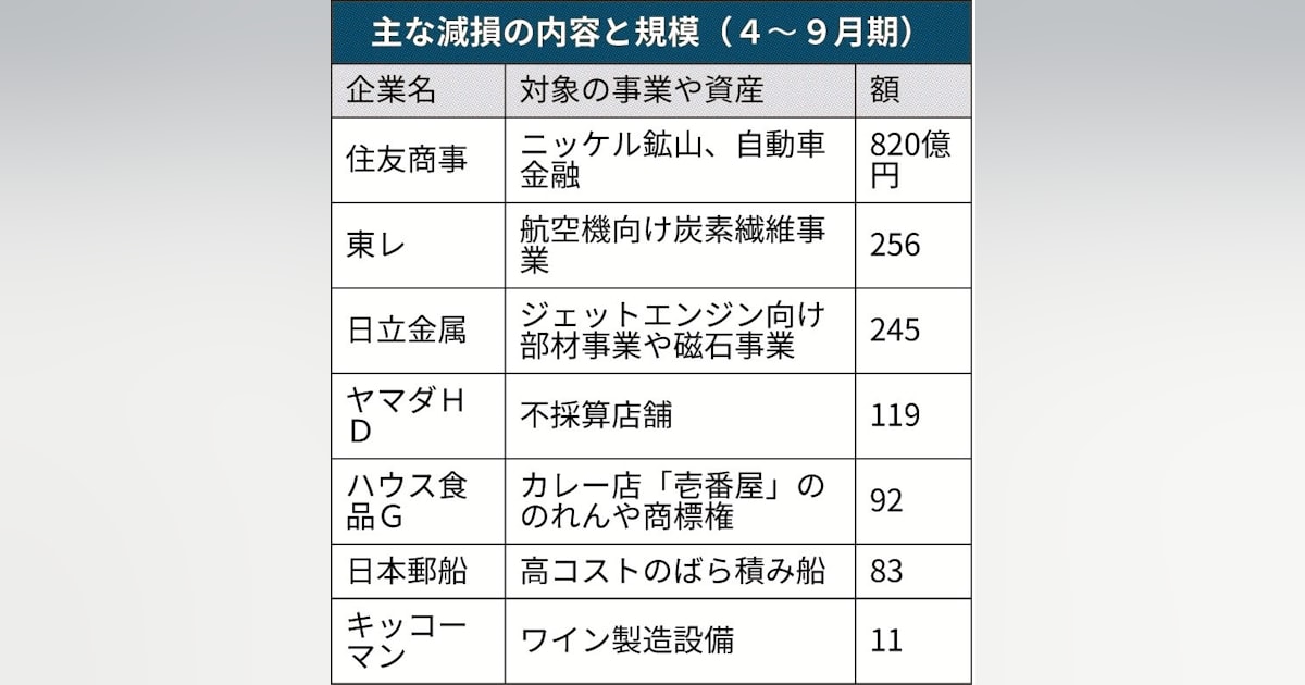 減損は生産設備や土地、のれんなど、企業が持つ資産の収益力が中長期に低下する場合に帳簿価格を引き下げる会計処理。判断には今後の経営環境の見極めが必要なため、年度末に集中することが多い。減損は一時的な損失につながる一方、減価償却費などの低下につながり、将来の収益性を高める側面もある。